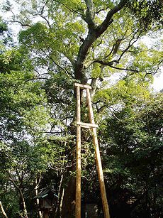 (中)大楠:境内には楠の木が多く、特に大きな楠7本を七本楠と呼び古くから有名である。