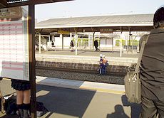 (左) (中)熱田駅構内で列車待ち時間に (右)宿泊ホテル近くの“水野社”