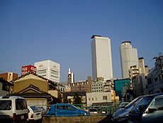 (左) (中)宿泊ホテル近くの“水野社” (右)ノンビリと歩きながら名古屋駅方向を何気なく撮りました