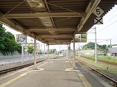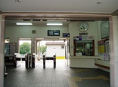 (左)列車待ちの時間を利用し中間駅舎を (中)中間駅 (右)中間駅構内です