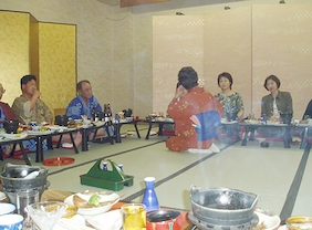 団体sanの場合はこんな広間で宴会となりますけど、ご家族連れの場合ですと各部屋でお食事。