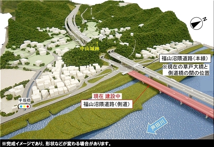 芦田川周辺のエリアでは、福山沼隈道路の工事以外にも鷹取本庄線の整備も進んでいます。鷹取本庄線の整備状況については後半でお伝えします。