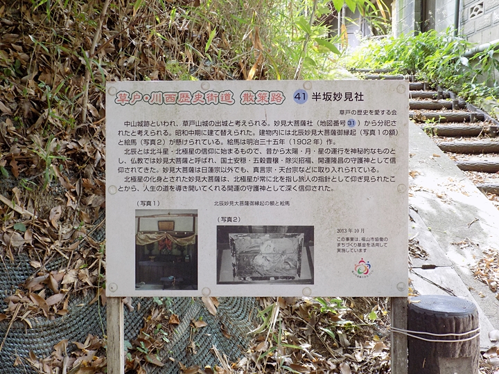 この案内標識脇には、「半坂妙見社」の案内板が…これには、こんな記載がありました。