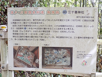 すると、スグに、今度は「三十番神社」の案内板が…これには、こんな記載が…