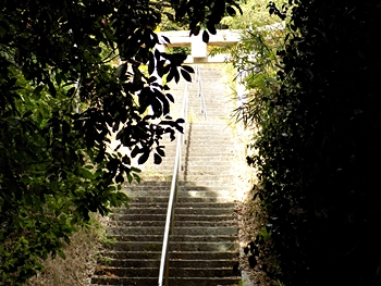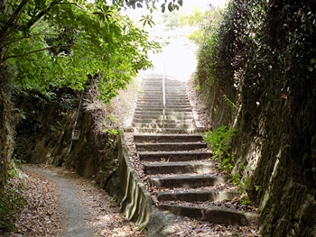 この石段を進めば「中山城跡(半坂妙見社)」に向かうのでしょうけど、後で上ることにしまして、まずは直進です。