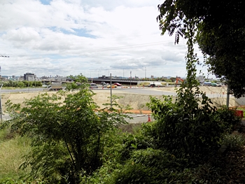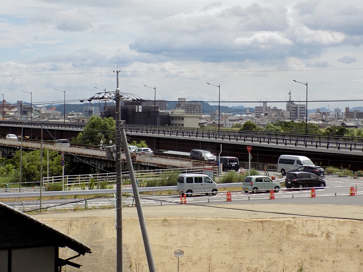 そして、左側の芦田川方向に眼を向けますと、福山沼隈道路の工事現場が…ふ〜ん、ここに出て来ましたネ。