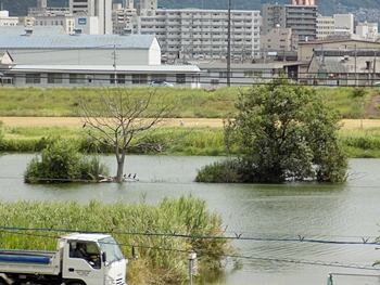 芦田川の中州には、カワウ(川鵜)の皆さんが休憩中です。