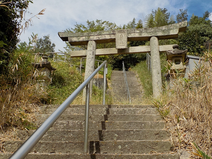 中山城跡ともいわれ、草戸山城の出城と考えられる。妙見大菩薩社(地図番号<31>)から分祀されたと考えられる。昭和中期に建て替えられた。建物内には北辰妙見大菩薩縁起(写真1の額)と絵馬(写真2)が懸けられている。絵馬は明治35年(1902年)作。