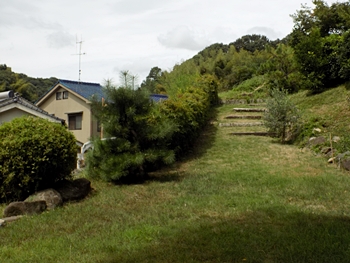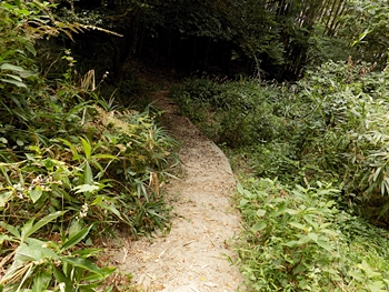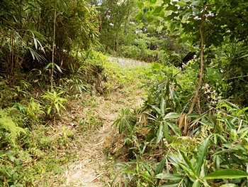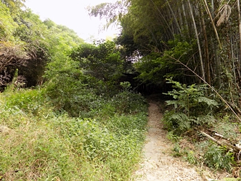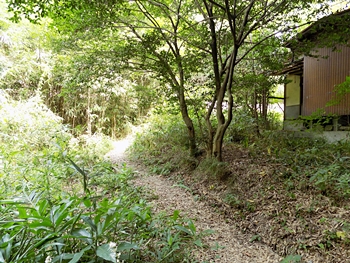 廃墟脇の上って来ました道を、そのまま下って行こうとしましたら、廃墟から左下に下ります小道が…