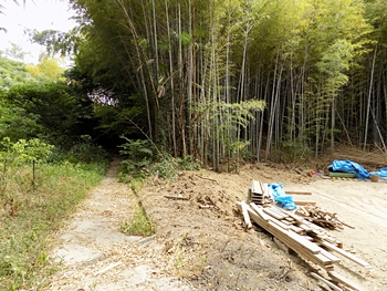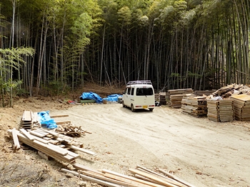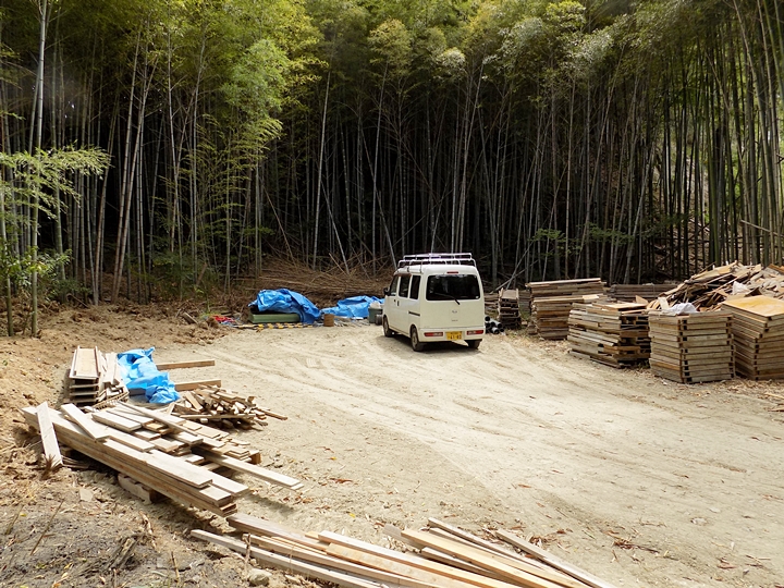 ここには車が一台止まり、周辺には建築資材なのでしょうか…廃材と言うか切れ端のような木材が周辺に…