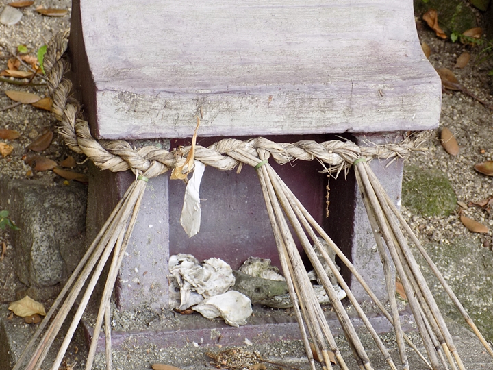 祠の中を覗いてみますと、うん、うん、確かに牡蠣の殻が入っておりました。