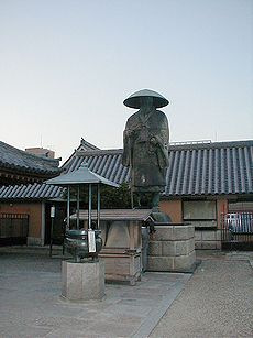 新しく渡来した、仏教を支持する蘇我氏と日本古来の宗教を推す物部氏 の二大豪族の狭間で 、弱冠16歳の聖徳太子は仏教の守護神、四天王に祈願して戦いに勝利した。その報恩謝徳のため、建てられたのが四天王寺である。