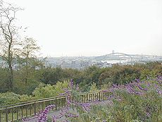特にツツジは約5万本あり、一大名所となっている。また、目前には巨大な港大橋が横たわり眺望がすばらしい。そのほか運動広場、体育館も備え、公園とし ての施設が充実している。