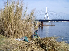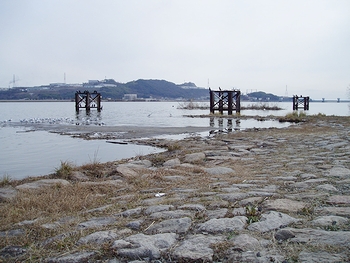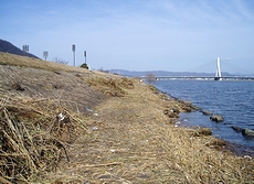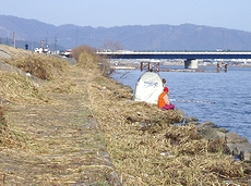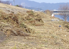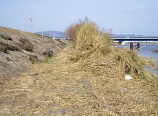 河岸にはまだ一部の葦が積まれて取り残されていましたから…