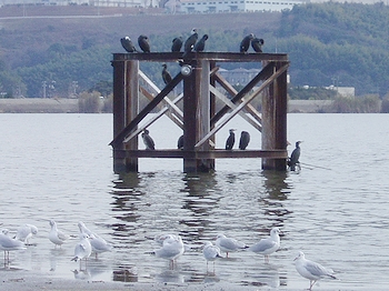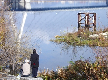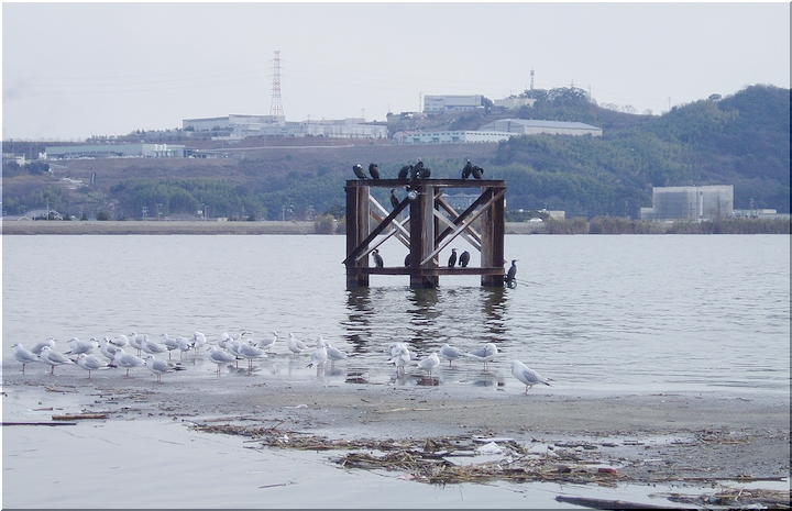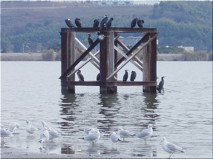 この時間帯には、ご年配の老夫婦がカモメとかヌートリアにエサを与えておられますから、いつも眼に出来ます様子。