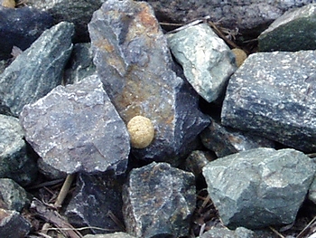 いつものように、ゴンchanと一緒に芦田川大橋下にと向かっておりまして、何気なく足元を見ますと、きっとカモメやヌートリアに与えておられますエサの一つなんでしょうねぇ〜石畳の隙間に大きなマメのようなモノが落ちておりました(^-^)