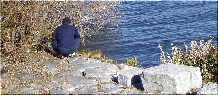 この日もこぅして屈み込んでヌートリアに餌を与えておられます方が…