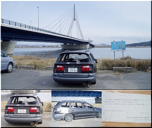 この車、確か昨年の10月上旬頃でしたか…この芦田川大橋下に駐車してありますのに気付きましたのは…