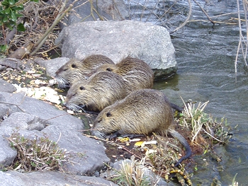運動公園・テニスコート横の土手下の河岸にはヌートリアが生息しているのですけど…