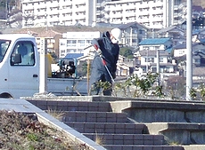 おっ、寒風の中をウォーキングですネ(^.-)☆