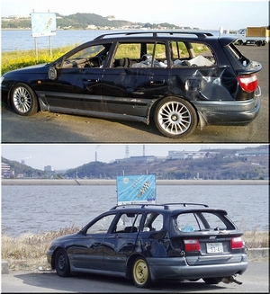 確か10月早々に眼にしました時には放置車とは思えませんキレイな車で、放置されているとは分かりませんでしたけど、10月中旬には車体はボコボコ、ウィンドゥは割られていましたから、その時初めて放置車なんだと気付きましたけど…