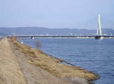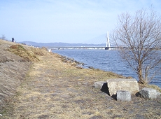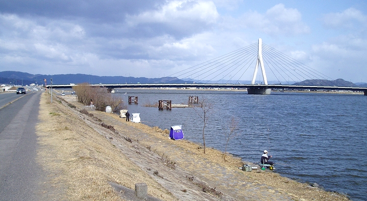 さて、挿入の画像はまた竹ヶ端運動公園テニスコート横の芦田川の景観です。