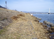 挿入していますこの画像、今年の元旦に撮りましたものなんですけど、 『土手下の石造りのベンチ』と言うのはこの場所なんですよねぇ〜