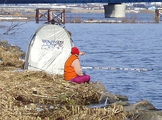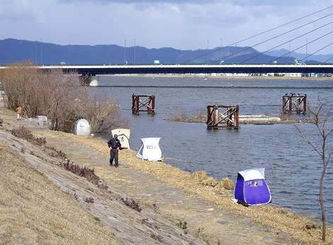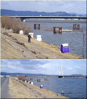 葦を刈り取られてしまいましてスッカリ殺風景となってしまいましたけど、釣り人の皆様は相変わらず釣り糸を垂れておられますねぇ〜