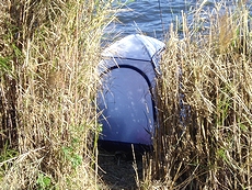 密生していました葦の中でこんなテントを張っておりますと、風も遮られ随分温かかったのでしょうけど、刈り取られましたお陰でモロに風も当たってしまいますネ(^-^)