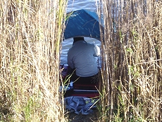 もぅ1ヶ月ばかり前の先月の上旬、テニスコート横の土手下の河岸に密生しておりました「葦」…この葦を掻き分けて場所取りをし、河面に釣り糸を垂れておられました釣り人の皆様。