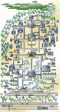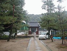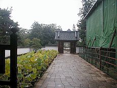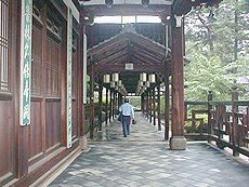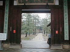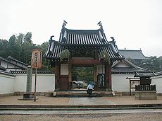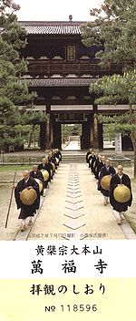 江戸時代初頭に来日し明の隠元禅師が伝えた黄檗宗の総本山中国の黄檗山万福寺を見本とし、建物や彫刻などすべてが、中国ムード。全体を見ると龍の形をし ているという。境内二十三の建物はすべて回廊で繋がれており山門には隠元禅師書の「萬福寺」の扁額が懸かり、その先の天王殿では都七福神の布袋和尚が迎え てくれます。