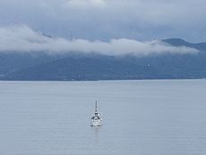 ↑↓ 早朝の小浜湾(若狭湾)の景観です(^.-)☆ 風もなく波は大変穏やかでした(^_^)v