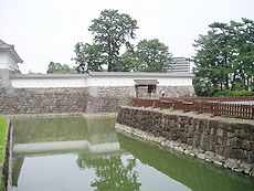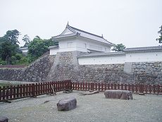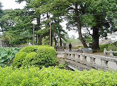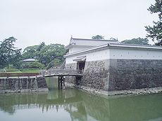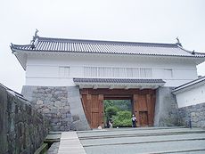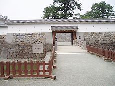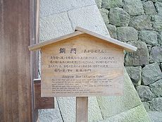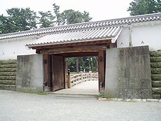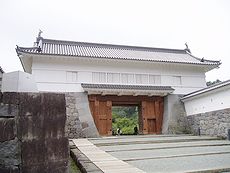 現在の銅門は、昭和58年(1983)から行われた発掘調査や古写真、絵図などを参考に、平成9年に復元されたもので、石垣による桝形、内仕切門及び櫓門を組み合わせた桝形門と呼ばれる形式で、本来の工法で復元されています。