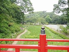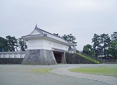 現在の常盤木門は、市制30周年事業として、明治時代初期に撮影された写真などを参考に再建したもので、昭和46年(1971)3月に完成しました。