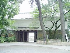 (左)常盤木門です (中)“常盤木門”と刻まれた石碑と案内板です(^.-)☆
