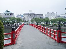 (左)銅門に至ります“めがね橋”です(^.-)☆ (右)小田原城跡散策後、小田原駅に向かいます市内の景観です