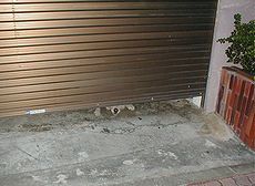 (左)シャッターの隙間から覗いていましたワンchanに“お早う”と挨拶