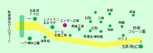 の歴史文化と触れ合う新たなテーマパークとして「玉泉洞王国村」が誕生。神秘な鍾乳洞「玉泉洞」に加え100種450本の果樹を一堂に集めた「熱帯果樹