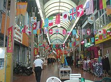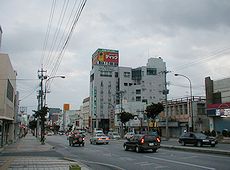 コザ運動公園からの帰路に撮りました (中)宿泊ホテル周辺の景観です (右)宿泊ホテル近くの商店街で