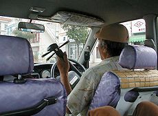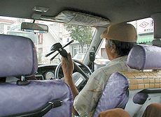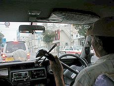 運転手さんが赤信号で止まる度に沖縄三味線で演奏ですから、朝は楽しい出勤