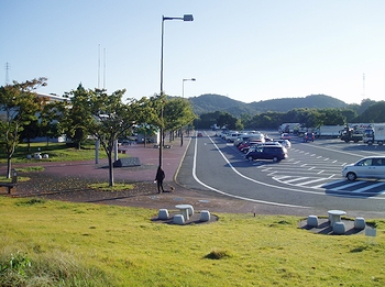 で、SA内の遊歩道を散策となりましたけど、お腹が空いたのでしょうねぇ〜何か欲しそうに嫁さんにねだりますから、とりあえずゴンchanの朝食タイムとなりました。