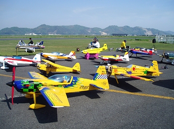 地元の無線操縦愛好家が曲技飛行などを披露する「菜の花フェスタ ラジコンフライトショー」が30日午前9時から午後4時まで、笠岡市笠岡湾干拓地の農道離着陸場(愛称・笠岡ふれあい空港)で初めて開かれる。