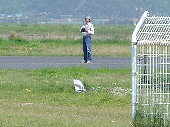 (左)これが鳥の形をしましたラジコン機のフライトです(^.-)☆ 上空を見上げますと、まるでホンモノの鳥でした(^_^)v