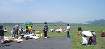 地元の無線操縦愛好家が華麗な飛行を披露する初の「菜の花フェスタ ラジコンフライトショー」が30日、笠岡市笠岡湾干拓地の笠岡ふれあい空港であった。同空港が練習拠点の「笠岡&福山ラジコンクラブ」など4団体と笠岡市でつくる実行委の主催。同市や福山市などの愛好家ら約50人が、プロペラ機など約130機を展示。うち60機を操縦。上空100メートルに浮上して急降下、大旋回する曲芸飛行もあった。
