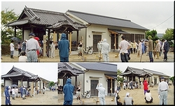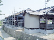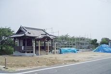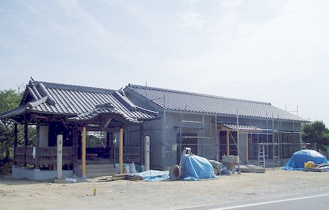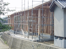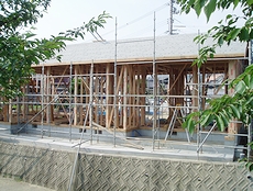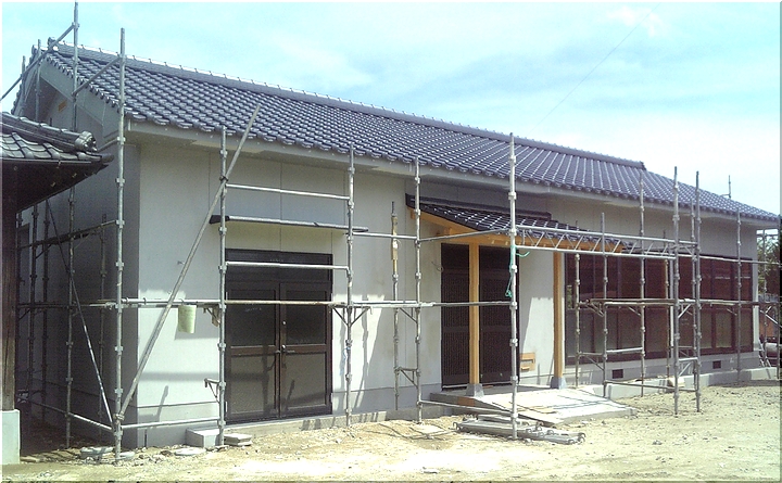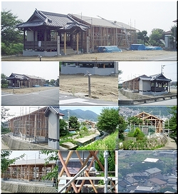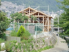 お盆で墓参りとかお寺参り、親戚の来訪…等で、それなりに過ごしておりまして、ハッと思い出しましたのがこの工事現場(^-^)出かけ見ますと、うん、うん、瓦葺きまで進行しておりましたネ(^_^)v挿入の画像を説明しますと、