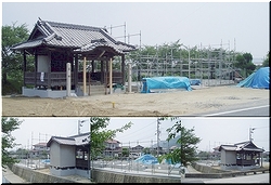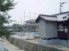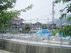 挿入の画像の下段右端は、この現場を墓地から撮りましたものなんです(^.-)☆竣工予定は9月の中旬ですから、この調子では何とか予定通りに進捗し秋祭りにも間に合いそうな感じですネ。