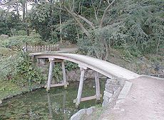 回遊式の南庭。茶道のわび・さびそのままにひっそり建つ数々の茶亭やたいこ橋の愛称で親しまれる偃月橋が優雅な弧を描き、一服のお茶をいただくひとときも