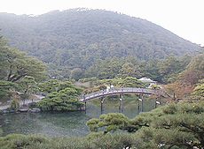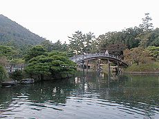緑濃い紫雲山を背景に6つの池と13の築山が一幅の日本画そのままの風情を織りなす栗林公園は、高松藩12万石が残した最高傑作です。