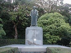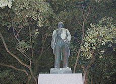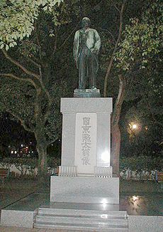 東門入り口です 通常はこちらから入園するのかも… (右)ホテルへの帰路“三木武吉”の像がありました(^.-)☆