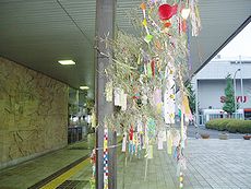 (左)早朝の佐賀駅です 七夕ですから(^_^)v (中)駅前の通りから佐賀駅を (右)早朝散策寺の市内の一光景です(^.-)☆